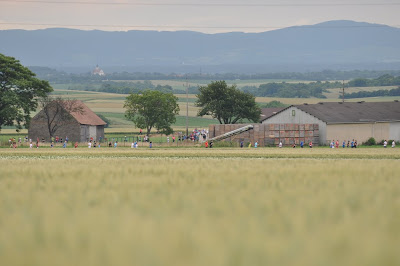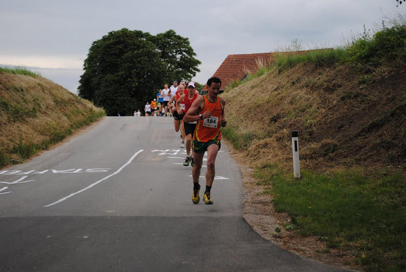 Je bilo kar gneče že spredaj. Kolikšna je morala biti šele zadaj. Pot nas je vodila med njivami, pašniki in vinogradi, rahlo razgibano po vseh mogočih podlagah.